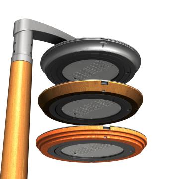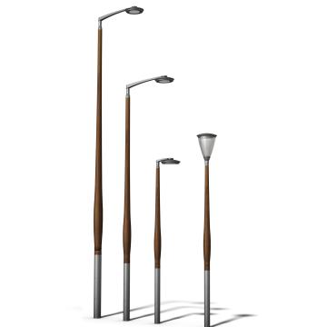 Sloupy FLEXIA jsou k dispozici v provedení z hliníku, pozinkované nebo cortenové oceli a dřeva, s různými možnostmi provedení a v barevné řadě Schréder.